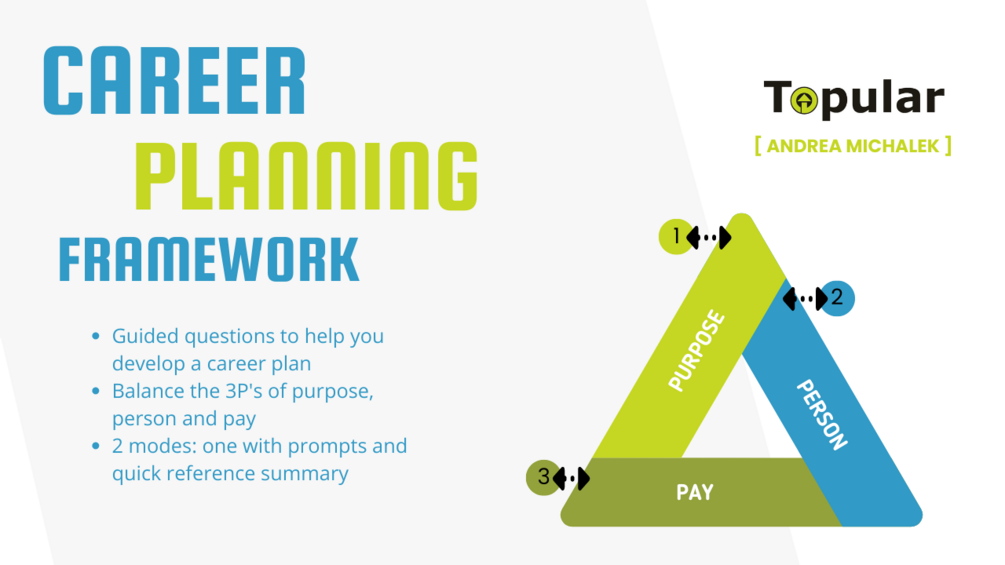 The Career Planning Framework includes guided questions to help you build a career plan as well as examples from Andrea Michalek.